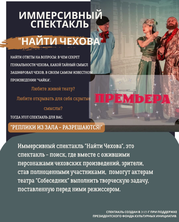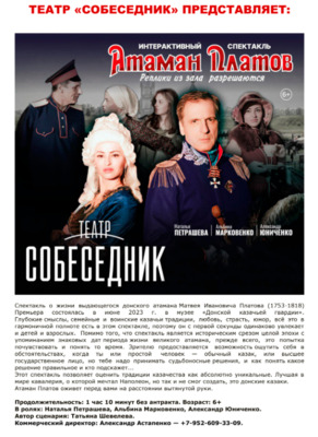 Ростовский театр «СОБЕСЕДНИК» приглашает посетить спектакли, участвующие в федеральной программе «ПУШКИНСКАЯ КАРТА», в учебных заведениях и домах культуры г. Ростова-на-Дону и Ростовской области.