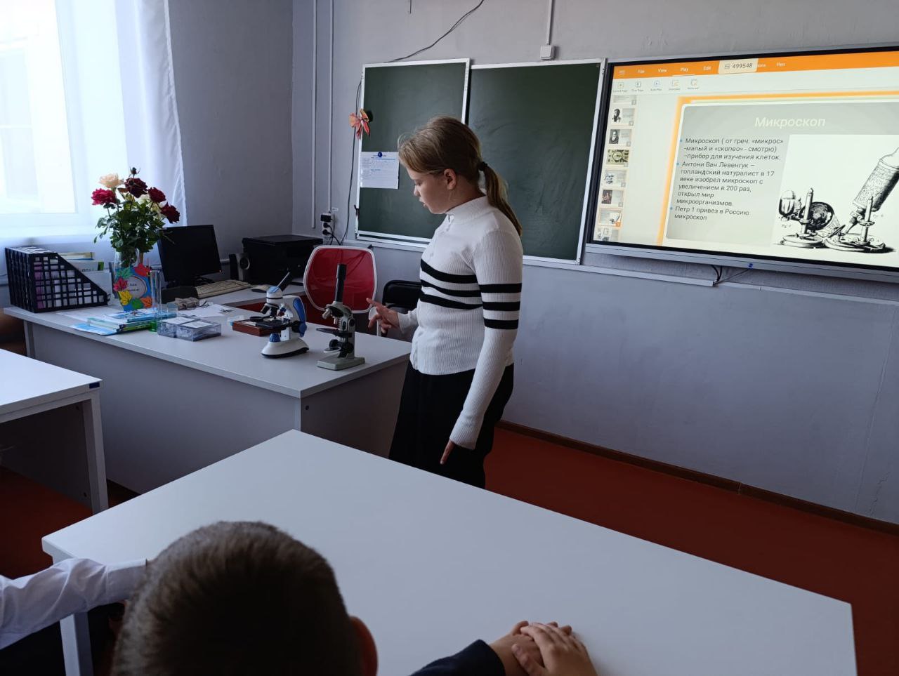 01.10.2024 Учитель биологии, Агеева Т.В., провела в рамках внеурочной деятельности, на базе центра "Точка Роста", для кружковцев "Практическая биология" игру КВН "Прибор, открывающий тайны». https://vk.com/wall-211824636_1945