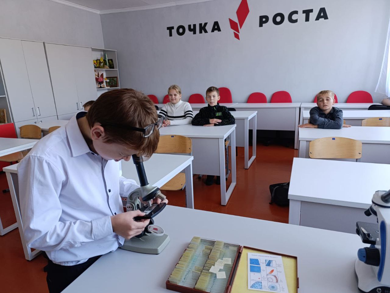 07.10.2025 На занятиях внеурочной деятельности "Мир под микроскопом" , обучающиеся 5 класса изучили увеличительные приборы, их устройства и правила работы с ними. Используя световой микроскоп ученики рассмотрели фиксированные микропрепараты.